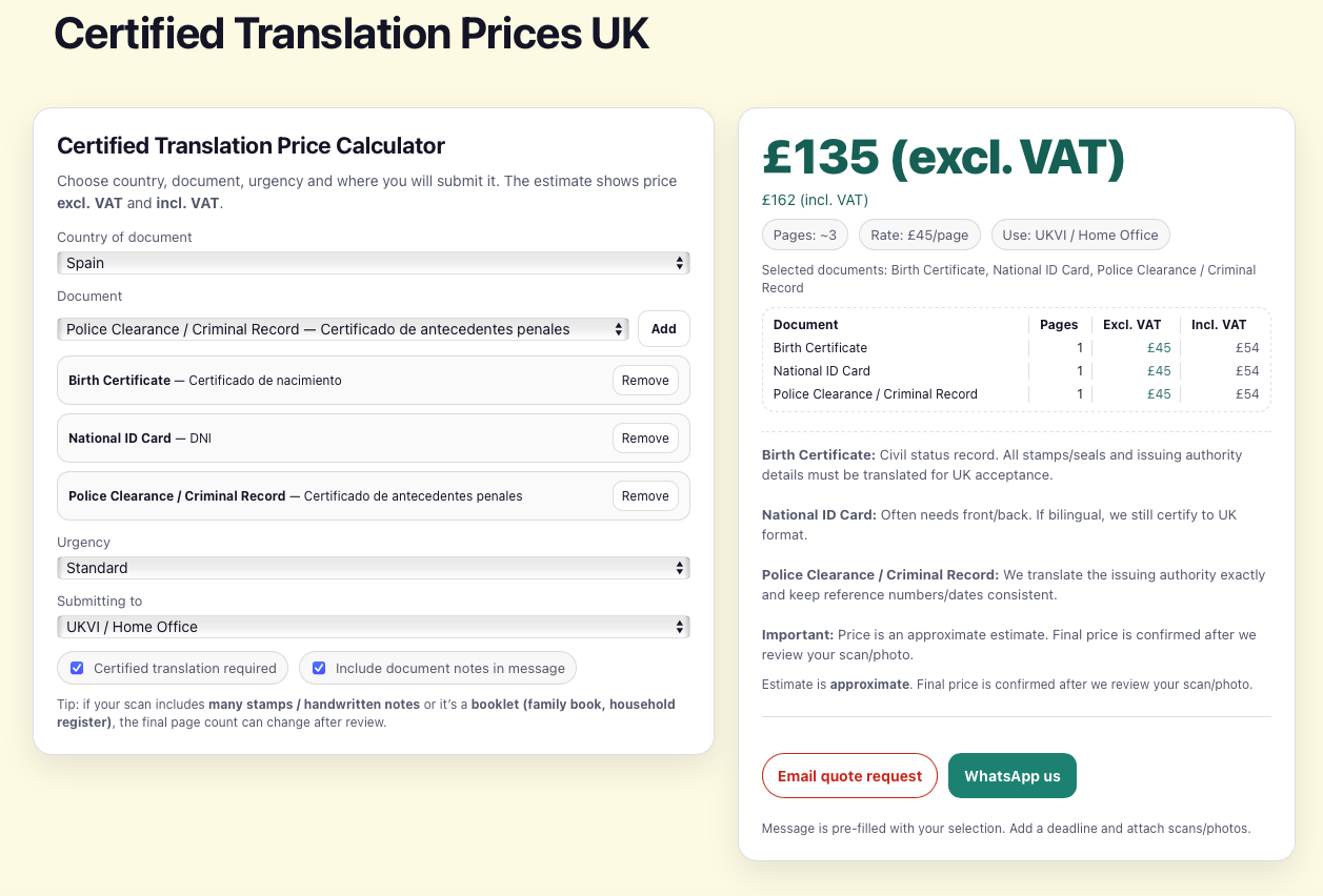The result is a transparent and user-friendly way to understand certified translation prices in the UK, including prices excluding VAT and including VAT.